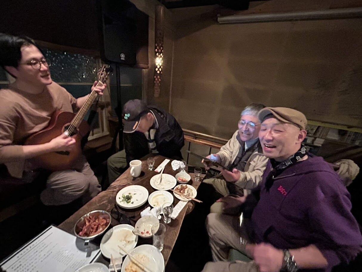 幅広い年代のお客さんが、共に歌い、新年の抱負を語る…