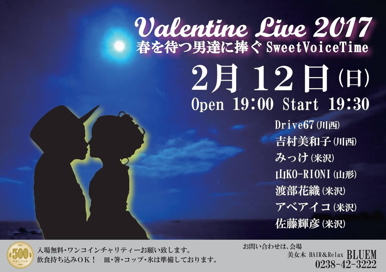 いよいよスタートします。。バレンタインライブは歌い手五人が女性です♬