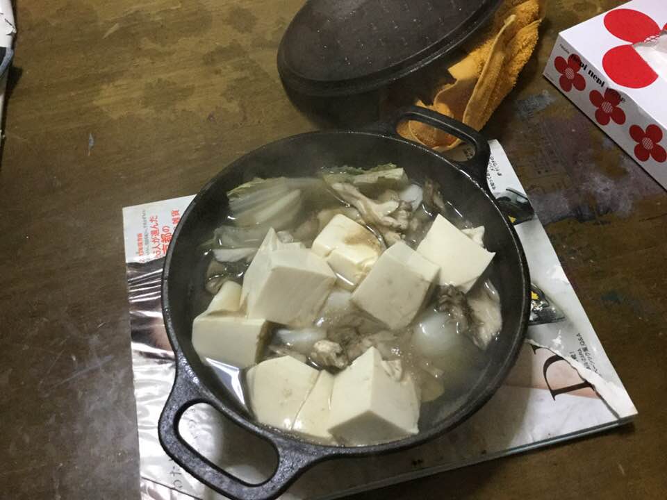 LODGEで一人鍋...50過ぎたら鉄分は鉄鍋で摂る昨夜。
