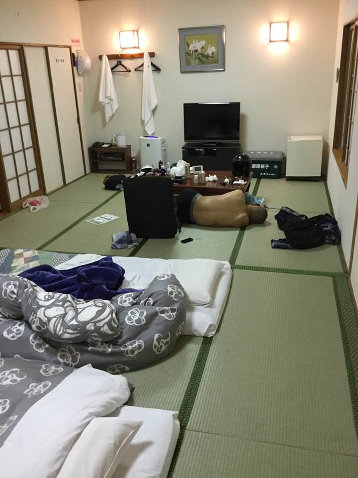 ホテルに到着。お風呂入って乾杯。