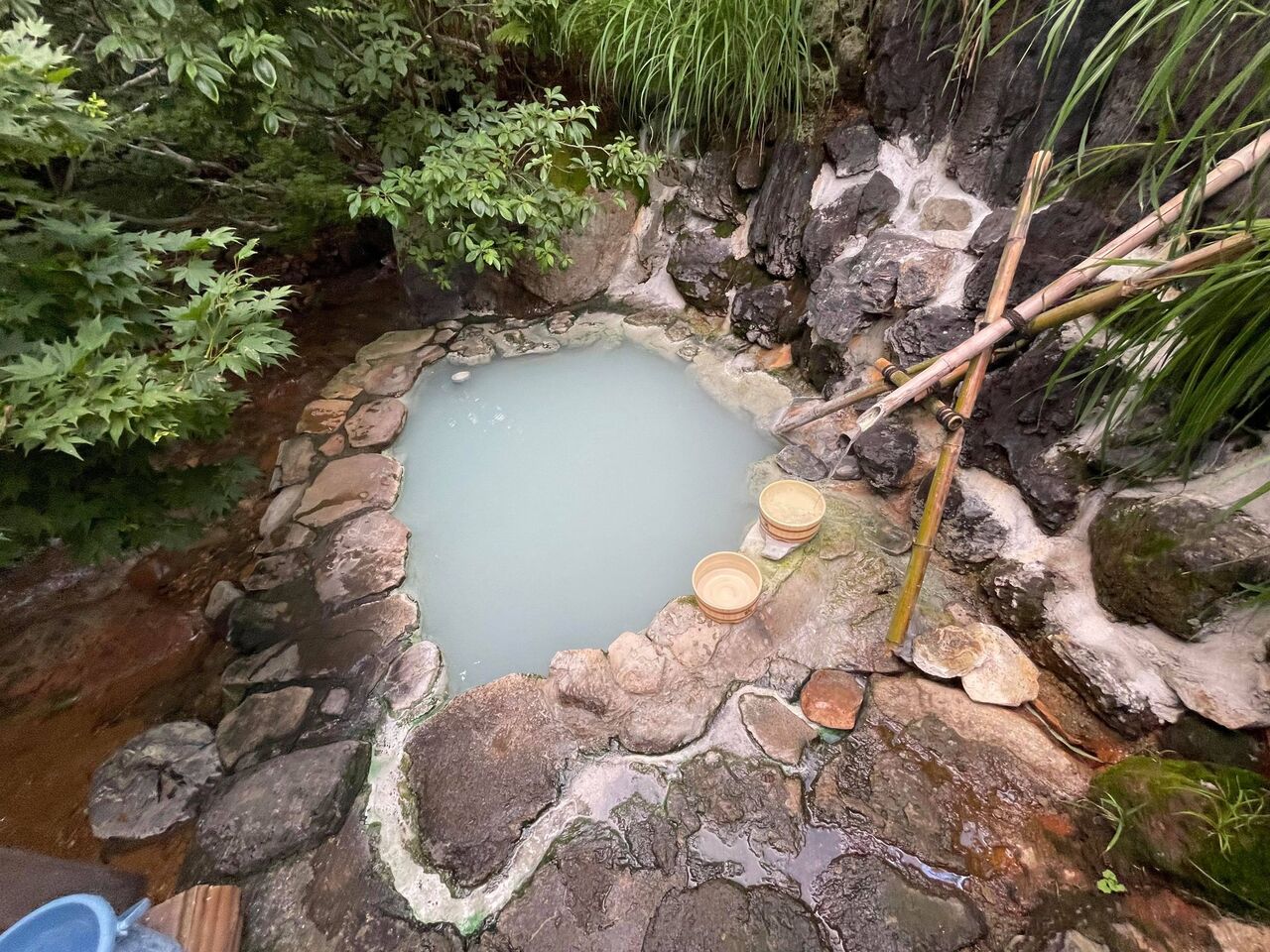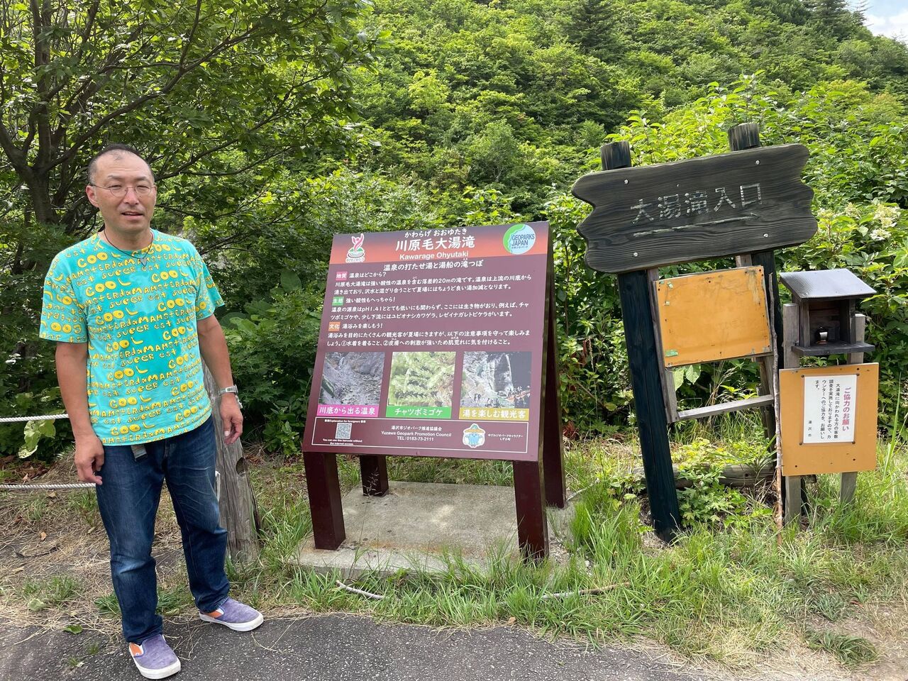 山形庄内から秋田湯沢に.... 川原毛地獄のそばにある初の川原毛大湯滝。