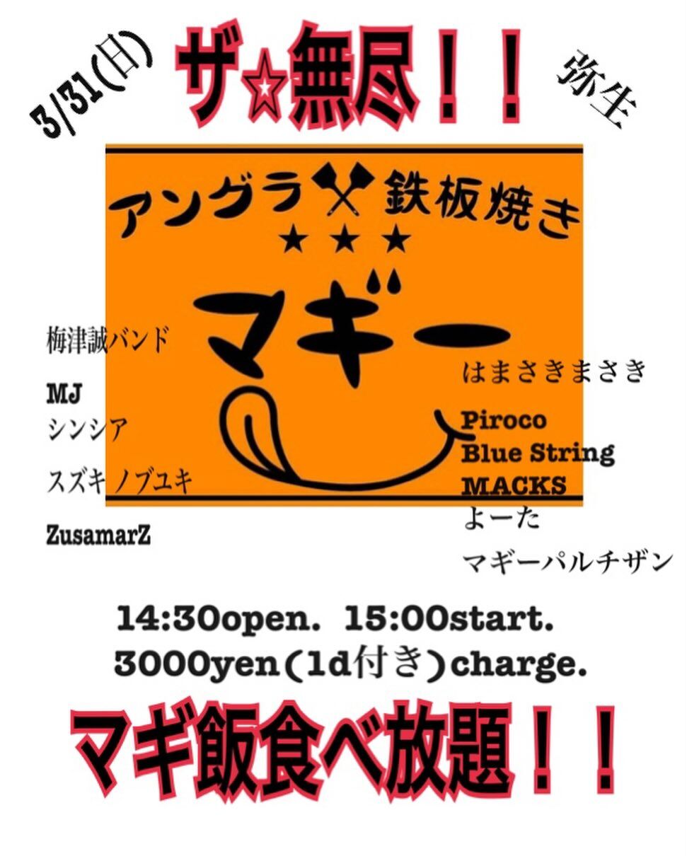 31日(日曜) 会津若松アングラ鉄板焼マギー無尽に、梅津誠バンド出演します。