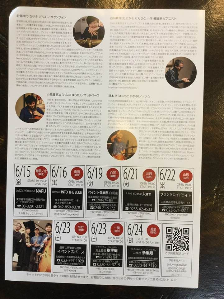 6月15日~24日の名雪祥代カルテットツアーに向けて、プロモーション兼ねての