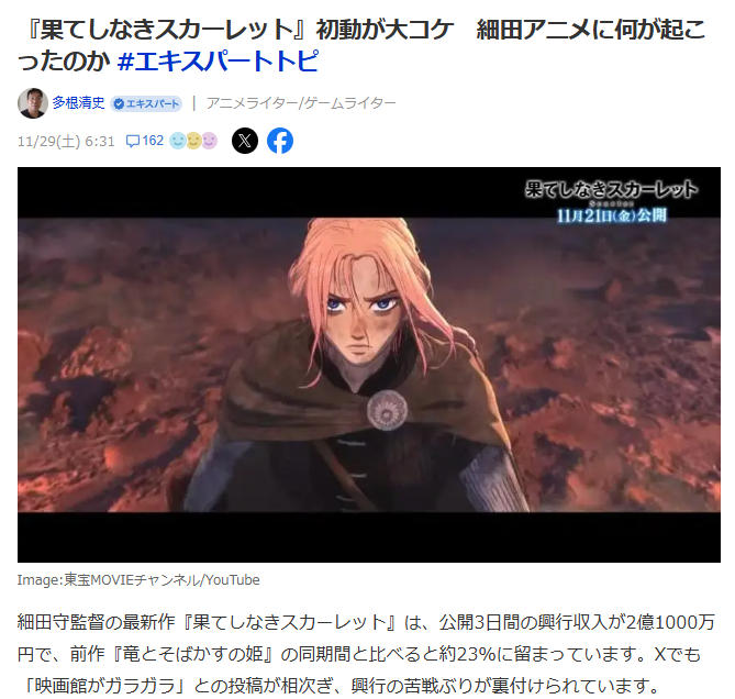 こんどの月曜は『果てしなきスカーレット』を観ようと思っていたが、酷評なので『爆弾』にしよう。